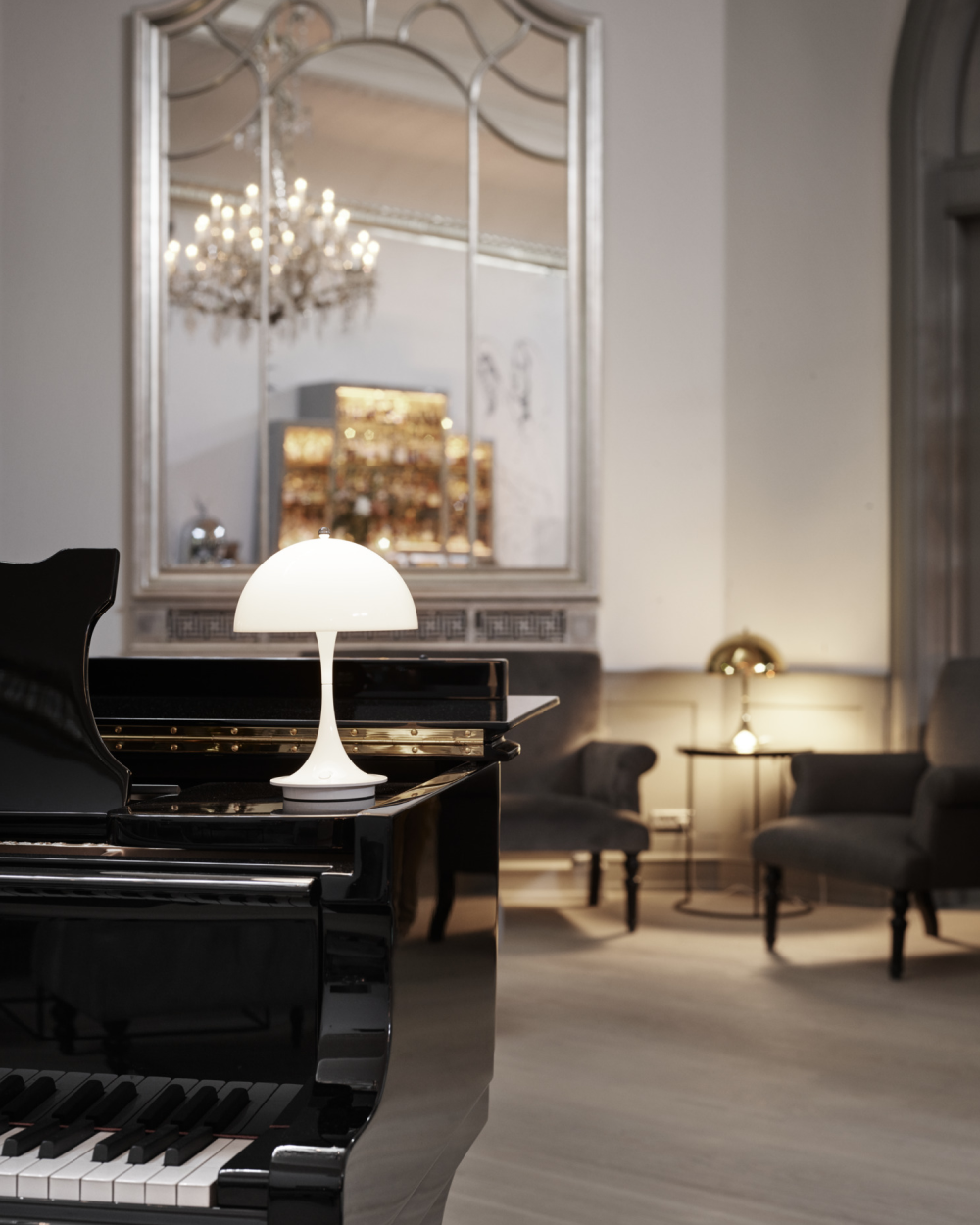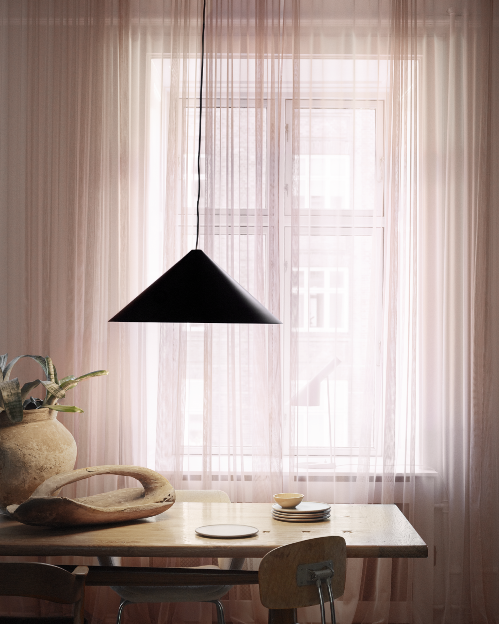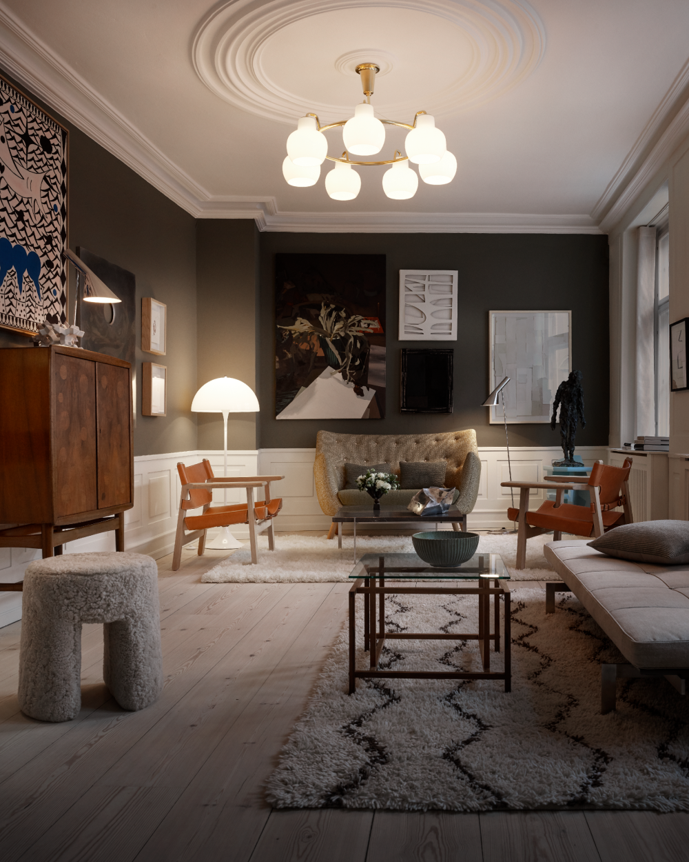 If you, for instance, would like to open up the room and make it appear more spacious, you can paint the ceiling white and place uplights along the wall. These will make the ceiling seem higher. If you want a more intimate and cosy feeling, pick darker colour tones for your walls and light sources with a warmer light. Also, consider the colours and materials of the floor, walls and ceiling when deciding on which lighting is appropriate for your room. Darker surfaces take on more light and therefore need stronger lighting than brighter surfaces, which work well with less light. In any case, make sure to mix the type of lamps to vary your lighting, and experiment with using both warm and cold light sources to find out what works best both for the room and for you.
